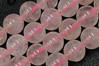ローズクォーツビーズ1連分と天然水晶ビーズ連1連分を並べた比較写真です。