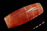 天珠型(筒形)に研磨されたインカローズは極めて珍しく、これは原石の品質が非常に高くないと成形できません。丸玉よりも大きな原石が必要なため、産出量はごくわずかです。