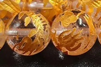 【天然石彫刻ビーズ連】【四神獣】【金箔】【手彫り】天然水晶彫刻ビーズ1連約8mm