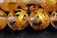 【天然石彫刻ビーズ連】【四神獣】【金箔】【手彫り】天然水晶彫刻ビーズ1連約8mm
