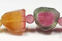 など、複数の色合いをもつビーズを組み合わせて仕上げたウォーターメロントルマリンの原石カットブレスレットです。